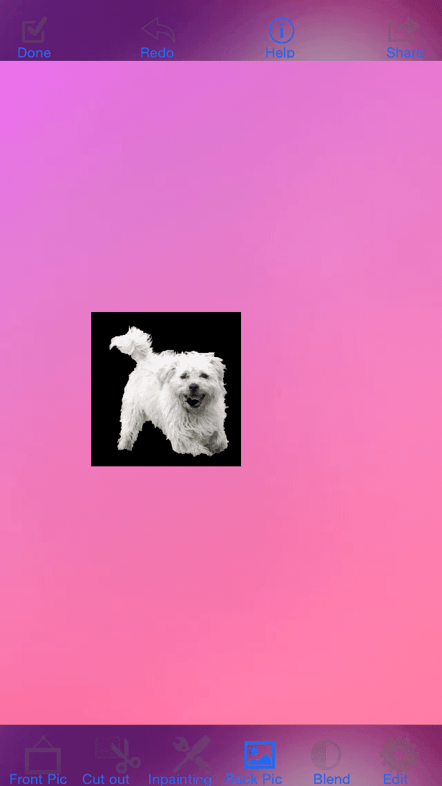 画像の切り出しが完了したら左上の[Done]をタップ。下段メニュー4番目の[Back Pic]から、背景画像を読み込みます。
