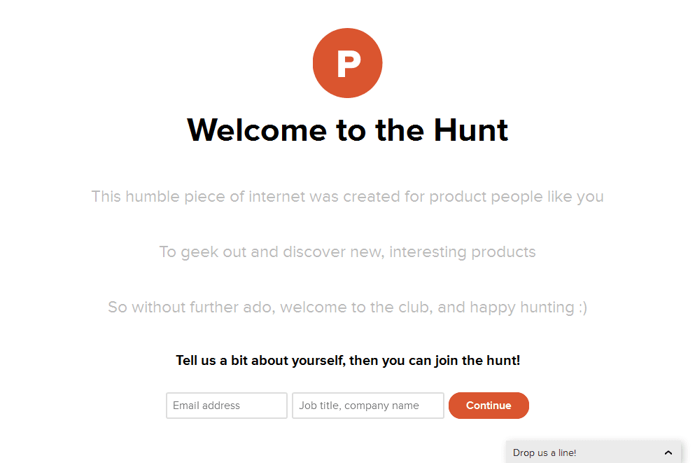 「連携アプリを認証」すると、Product Huntの登録画面が開くので、メールアドレスとJob title(閲覧のみの利用なら適当でOK)を入力。「Continue」をクリックすると、アカウント作成が完了します。