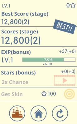 丸の色が同一ブロックが縦横一直線に3つ以上並ぶと、それらのブロックが消えます。